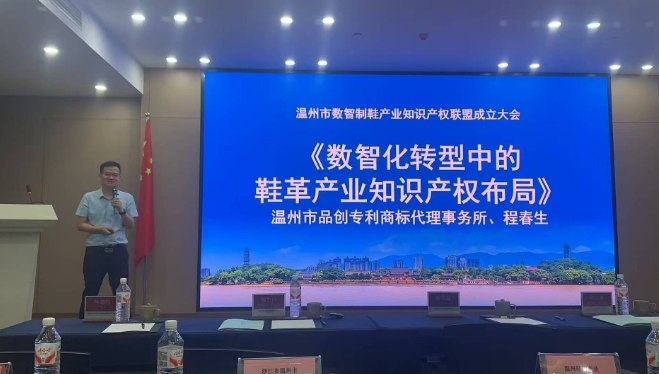 8月14日,温州市数智制鞋产业知识产权联盟成立大会召开。温州市品创专利商标代理事务所所长 、技术经纪人 、诉讼专利代理师 、评审专家程春生出席并应邀作专家分享。
