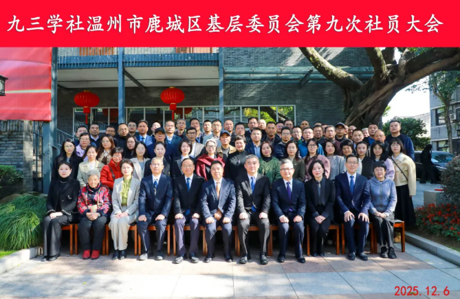 12月6日,九三学社鹿城区基层委召开第九次全体社员大会,市政协副主席、社市委主委马永信,社市委专职副主委叶辑松,区委常委、统战部部长戴冕,区委统战部常务副部长贾钧钬,区政协副主席、致公党鹿城区基层委主委王璋弟代表鹿城区民主党派、工商联和无党派人士出席会议。