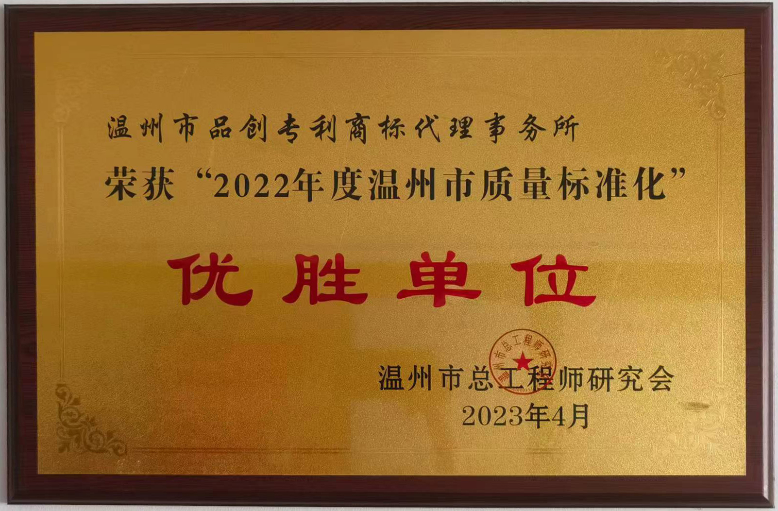 2022年温州市质量标准化优胜单位