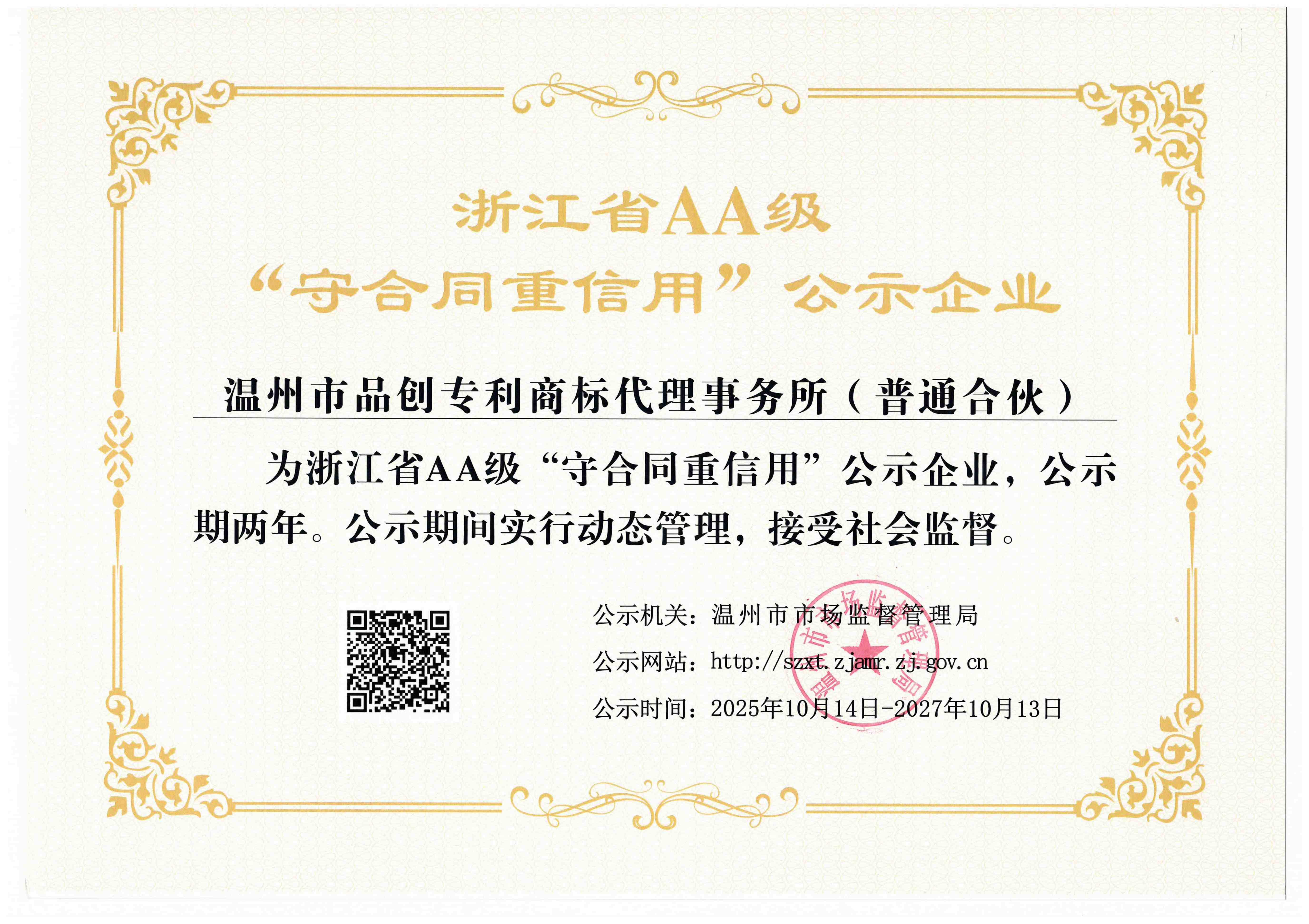 浙江省A级守合同重信用公示单位